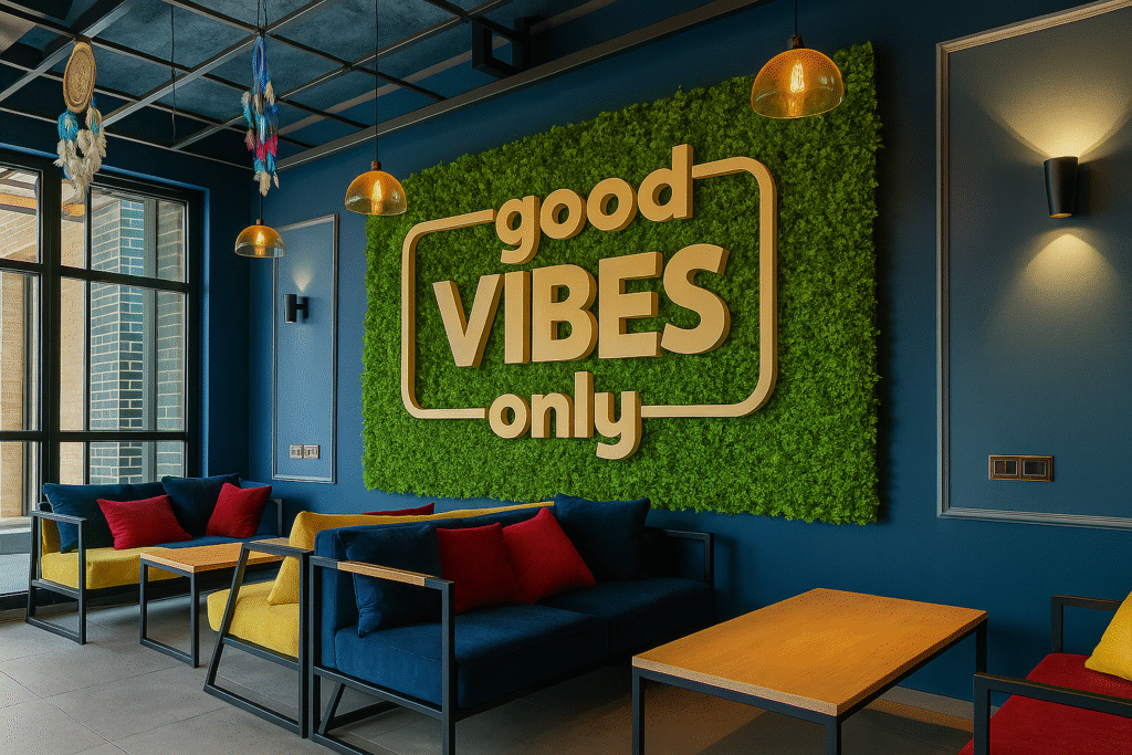 The reception is the first impression, we make sure it’s magnetic. We design branded wall graphics, acrylic signage, and full-scale murals that greet visitors with your personality, story, and values right from the entrance.